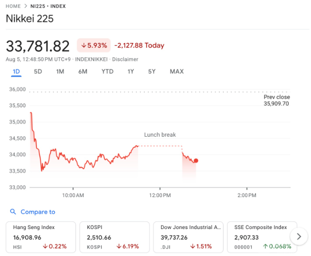 此次早盤下跌是自4月13日以來(lái)的最大單日跌幅,原因是投資者對(duì)美國(guó)和海外主要科技股失去信心,導(dǎo)致大盤和日本股市大幅下跌。To提到,“6月份美國(guó)失業(yè)率從4.1%上升至4.3%,引發(fā)了人們對(duì)勞動(dòng)力市場(chǎng)放緩的擔(dān)憂,這種焦慮似乎隨著日經(jīng)225指數(shù)而蔓延!