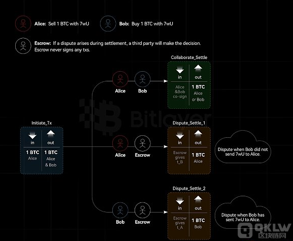 BitVM跨鏈橋技術(shù)較為復(fù)雜。在Peg-in階段,用戶將Bitcoin支付給BitVM聯(lián)盟控制的多簽地址,實(shí)現(xiàn)Bitcoin鎖定。在Layer2網(wǎng)絡(luò)中鑄造相應(yīng)數(shù)量的通證,并用于Layer2交易。當(dāng)用戶銷毀通證時(shí),Operator會(huì)先行墊付,然后通過(guò)樂(lè)觀挑戰(zhàn)機(jī)制從BitVM聯(lián)盟控制的多簽池中報(bào)銷Bitcoin。這種機(jī)制通過(guò)允許任何第三方挑戰(zhàn)惡意行為來(lái)保障安全,但交易費(fèi)較高,因此主要適用于超大額交易。