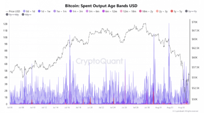 近期,Bitcoin(BTC)價格在經歷7月底的急劇下跌后,于周二回升至55,000美元以上。經濟學家Jeremy Siegel呼吁緊急降息,以應對市場動蕩。同時,Arkham Intelligence數據顯示,主要投資者如貝萊德(BlackRock),MicroStrategy,灰度(Grayscale)和富達(Fidelity)在拋售期間保持了Bitcoin持有量不變。鏈上數據顯示,短期投資者在恐慌性拋售,這表明在下跌趨勢恢復前可能會出現小幅復蘇。