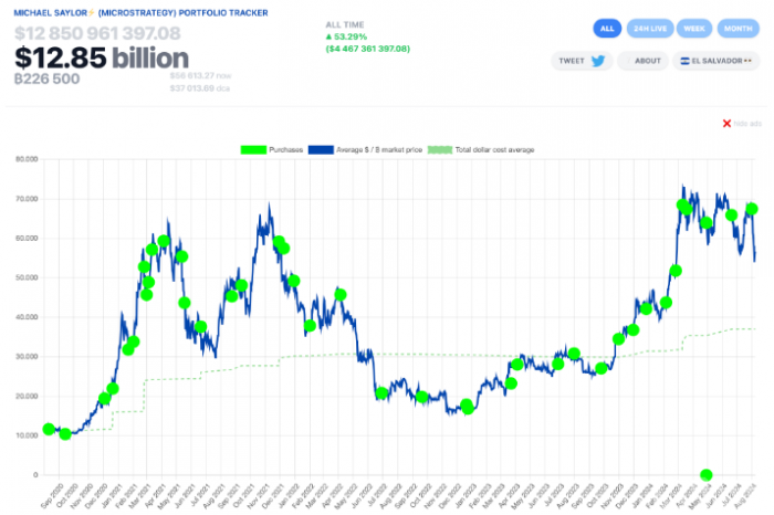 Saylor表示:“我個人持有大量Bitcoin。四年前,我在推特上公布了我擁有17,732個Bitcoin的消息。從那時起,我沒有出售任何Bitcoin,反而繼續增加我的持倉!北M管Saylor并未透露他截至2024年持有的具體Bitcoin數量,但根據他2020年的公開數據,他的初始投資現已增長至約9.96億美元。