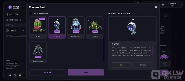 Pixelverse的玩法簡單易上手,可通過網(wǎng)頁瀏覽器或TG應(yīng)用進(jìn)行。游戲圍繞通過各種活動(dòng)賺取獎(jiǎng)勵(lì),包括: