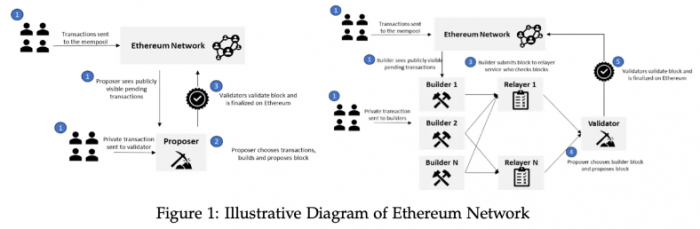 在制裁實施后不久,EthereumBlockchain的共識機制從工作量證明(PoW)轉(zhuǎn)變?yōu)闄?quán)益證明(PoS)。該轉(zhuǎn)變意味著,提議者(也稱為驗證者)從構(gòu)建者那里接收交易塊。報告顯示,大型構(gòu)建者普遍遵守制裁規(guī)定,但程度有所不同。對于那些拒絕遵守制裁的區(qū)塊建設(shè)者,更多是出于信念而非利潤動機。