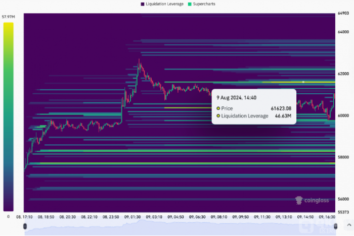 CoinGlass的數據顯示,在62,000美元附近,存在大量賣單,這進一步強化了這一阻力位的影響力。現貨價格與62,000美元之間的賣單接近4663萬美元,為Bitcoin的上行增加了壓力。