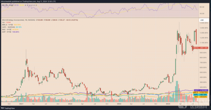 自2020年8月10日以來,MicroStrategy開始將Bitcoin(BTC)作為主要儲備資產,成為第一家接受這種crypto的上市公司。四年后,該公司的這一戰略已經取得了巨大的成功,利潤超越了沃倫·巴菲特領導的伯克希爾·哈撒韋公司。
