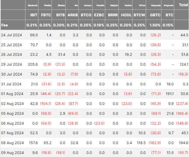 與此同時(shí),美國BitcoinETF的流入量依然疲軟,8月9日的凈流出額超過8900萬美元。