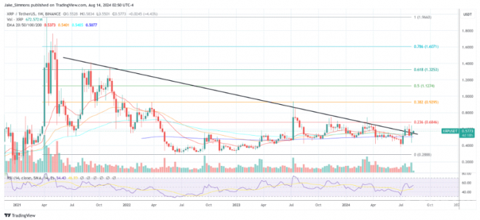 著名ETF專家Nate Geraci則在社交媒體上表示:“我一直在SEC網站上等待XRP ETF的備案。”截至撰寫本文時,XRP的交易價格為0.57美元。