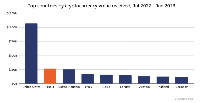 印度作為世界第一人口大國,以及軟件外包產業強國,其Web3技術和金融賽道的發展備受全球投資者矚目。加密數據分析機構Chainalysis在去年發布的報告稱,從2022年7月至2023年9月,印度市場的加密資產交易額接近2670億美元,躍升為世界第二大加密資產交易市場,這也讓加密資產愛好者對這片熱土滿懷期待。然而,這一切的幻想在2022年2月1日逐漸破滅。
