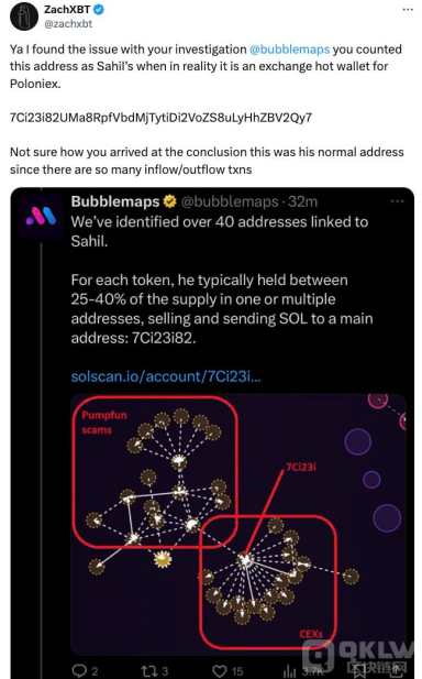 ZachXBT 指出,Bubblemaps 在計算中存在明顯錯誤,錯誤地將crypto交易所 Poloniex 的錢包地址標記為阿羅拉的個人錢包,從而夸大了其收入總額。他表示:“抱歉,這個計算似乎不正確,Sahil 不可能賺到 2600 萬美元,最多也就 500 萬美元,實際上可能只有 2-300 萬美元。”