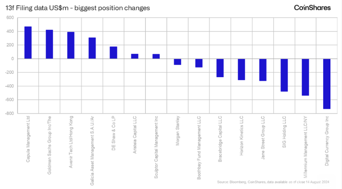 根據(jù)CoinSharesResearch的分析,高盛、Capula Management和Avenir Tech成為第二季度BitcoinETF的主要買家。三家公司總共購買了近13億美元的BitcoinETF股票。自1月份推出以來,BitcoinETF的需求量持續(xù)增長,這在一定程度上得益于摩根士丹利等主要金融機構(gòu)的支持。GrayscaleETF全球主管DaveLaValle表示,基金流入量超過150億美元,是歷史上最大單年流入量的三倍多。
