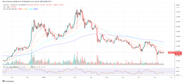 截至報(bào)道時(shí),ADA 的交易價(jià)格為 0.33 美元。