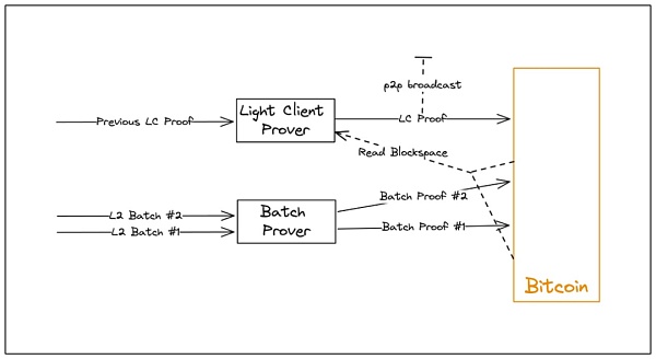 一切的起因是:ZKP在基于Ethereum的Layer2上大顯身手,使得許多項目都在寄希望于ZKP是否能夠同樣的用于BitcoinLayer-2上。顯然,大量的開發者(特別是最挑剔的那些人)對BitcoinLayer2的發展非常不看好,而它們的擔憂也是很有道理的。常規的Layer2,如基于Ethereum的optimisic,zkrollup,都是通過鏈下計算,鏈上驗證的方式,對一層網絡的數據進行壓縮,以及對計算資源進行擴展。單由于Bitcoin網絡并不支持復雜邏輯的validation,因此這個方案難以實現。因此,大部分聲稱自己采用了零知識證明技術的BitcoinLayer-2項目,都采用了一種叫做SovereignRollup的方案。