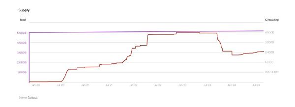 初始分配中,98.55%的Tokens通過工作量證明(PoW)挖出,剩下的1.45%由開發團隊持有。