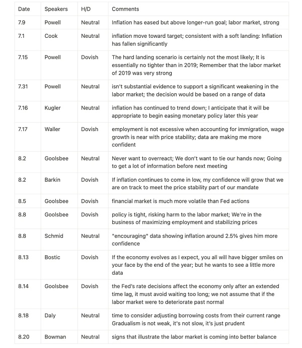 美聯(lián)儲動向:美聯(lián)儲官員發(fā)言顯示政策調(diào)整謹慎,9月點陣圖預(yù)計將繼續(xù)保持寬松立場。