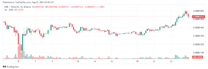 截至目前,SHIB的交易價(jià)格為0.000015美元,盡管在過去24小時(shí)內(nèi)上漲了1%,但距離0.00005美元的目標(biāo)仍有一段距離。