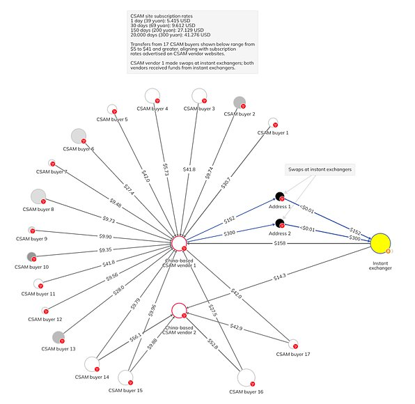自2023年底以來,cn兒童性虐待材料(CSAM)供應商的報告有所增加。數(shù)據(jù)顯示,cn供應商在全球CSAM流入量中的占比顯著上升,今年第一季度達到38.8%。這些供應商通常提供crypto支付的人民幣兌換率,而大多數(shù)買家選擇購買一個月或更長時間的訪問權限。