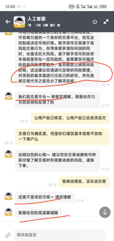 在幣安發布公告后,知名KOL@bitcoin136在社交媒體上發表了長文,指責幣安未能在8月19日的公告中提及Tokens增發,導致他提前買入FRONTTokens而遭受了經濟損失。@bitcoin136同時還貼出了他與幣安客服的聊天記錄,客服表示用戶需自行調研項目方背景信息。該事件在社區內引發了廣泛討論,不少成員支持@bitcoin136的觀點,認為幣安和項目方的操作不透明,損害了投資者的權益。