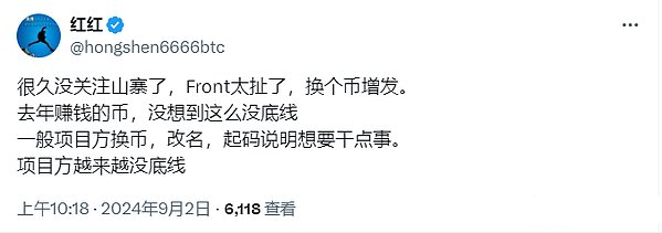 近年來,Blockchain項目改名已經成為一種趨勢,近期包括MakerDAO更名為Sky Protocol、MATIC更名為POL、Fantom更名為Sonic Labs等,但通常情況下,這些項目都會在Tokens置換過程中給予投資者等值的Tokens。然而,最近Frontier項目的Tokens置換操作卻引發了廣泛的社區爭議。盡管項目方將Tokens總量增發了四倍,但投資者卻只獲得了按原比例置換的Tokens,這一操作引發了社區的強烈不滿。