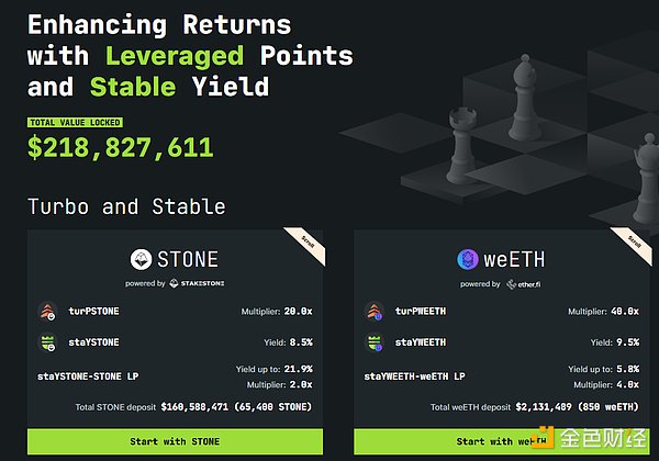 stoneQUEEN可以與STONE1:1兌換,持有stoneQUEEN可以獲得和持有等量STONE相同倍數(shù)的StakeStone積分。然而,把stoneQUEEN拆分成staYSTONE和turPSTONE并同時(shí)持有這兩者,可以無(wú)損獲得2倍的積分乘數(shù),同時(shí)根據(jù)持有價(jià)值獲得ScrollMarks積分。