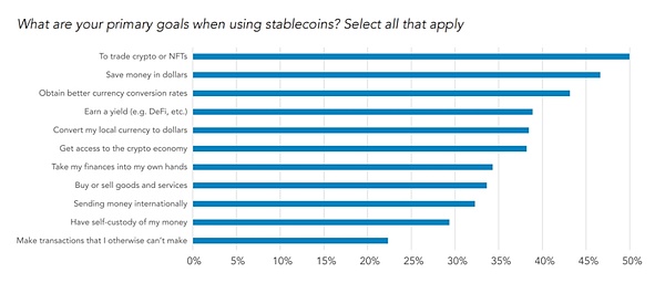 調查結果很明確:在接受調查的國家中,非Crypto用途占穩定幣使用模式的很大一部分。