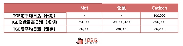讓我們來看看Catizen,作為Ton生態上熱度最大的小游戲之一,從發幣前64萬活躍用戶降至7萬只需要一天,后續的用戶留存數據更顯低迷。從長線用戶來看,哪怕游戲內容無任何改變,在空投預期不復存在后,高達90%及以上的用戶立即抽身,最終沉淀留存的僅3萬人左右。這樣的用戶留存比是否達到了投資人的預期以及實現了拉新的目的?哪怕獲取了空投的用戶轉向交易所帶來一波即時的用戶增長,在拋售空投變現后,這些用戶是否會像拋棄Catizen一樣。當產品本身變身變成viralcampaign,以拉新為目的的短期項目,哪怕短期為生態帶來了一波增量,但真正沉淀下來的用戶,能否滿足生態和交易所預期,對得起這筆投資呢?我們仍然存疑。