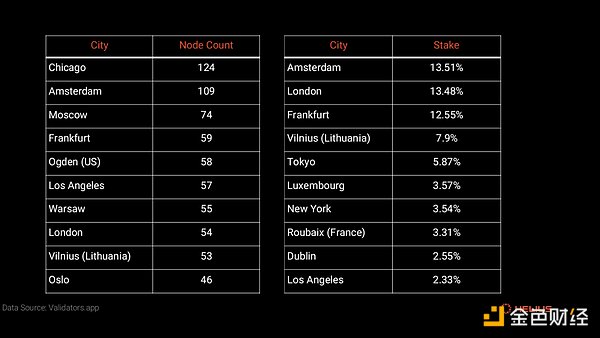 網絡節點的地理多樣性對于降低風險和提高網絡抗脆弱性至關重要。當過多的驗證者集中在一個地區時,網絡的彈性就會依賴于這些特定司法管轄區的監管框架。
