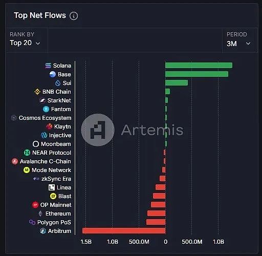 譯者按:憑借AI發(fā)幣平臺(tái)Clanker及Virtuals的爆火,行業(yè)對(duì)Base生態(tài)的關(guān)注出現(xiàn)「暴漲」。當(dāng)?shù)貢r(shí)間11月26日,Base上的交易量直線(xiàn)拉升,達(dá)到約 1136萬(wàn)筆,為歷史上首次單日交易量突破1000萬(wàn)筆(其中有超一半的交易被撤回。Base協(xié)議負(fù)責(zé)人 JessePollak 回應(yīng)稱(chēng),交易被撤回系搶跑機(jī)器人試圖瘋狂捕獲MEV所致,并計(jì)劃進(jìn)一步擴(kuò)展Base)。此外,近期Solana生態(tài)Memecoin龍頭pump.fun因直播一事遭社區(qū)「轟炸」,一時(shí)間資金似有向Base等生態(tài)流動(dòng)的跡象。Artemis 數(shù)據(jù)顯示,Base最近1個(gè)月的鏈上資金流入達(dá)到了8.15億美元,在所有鏈中排名第一,而作為對(duì)比,Solana的資金凈流入僅3.04億美元。所以,Baseseason要來(lái)了嗎?