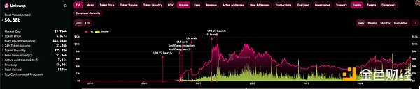 自2020年5月V2版本上線以來,Uniswap在去中心化交易領域的市場份額經歷了波動起伏。它曾在2020年8月創下近78.4%的市場份額高峰,但隨后在2021年11月,隨著DEX競爭的加劇,跌至36.8%的低谷。然而,Uniswap不僅成功恢復了勢頭,還憑借近70%的市場份額證明了其韌性與復蘇能力。同時,Uniswap也創下了月均交易額944億美元的歷史新高。
