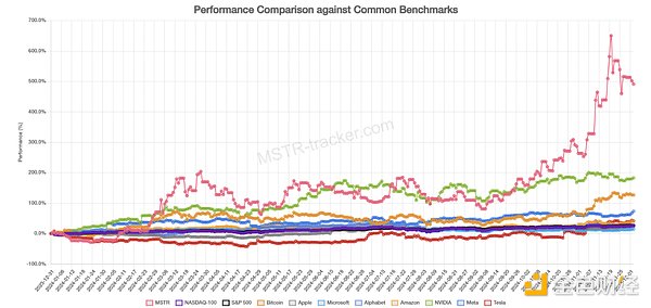 MicroStrategy宣布計(jì)劃在未來三年(2025年至2027年)內(nèi)籌集總計(jì)420億美元的資金。其中,210億美元將來自股票發(fā)行,其余210億美元將通過固定收益發(fā)行籌集。具體時(shí)間表為:2025年從每個(gè)資金來源籌集50億美元,2026年籌集70億美元,2027年籌集90億美元。1.3一些有趣的統(tǒng)計(jì)數(shù)據(jù)