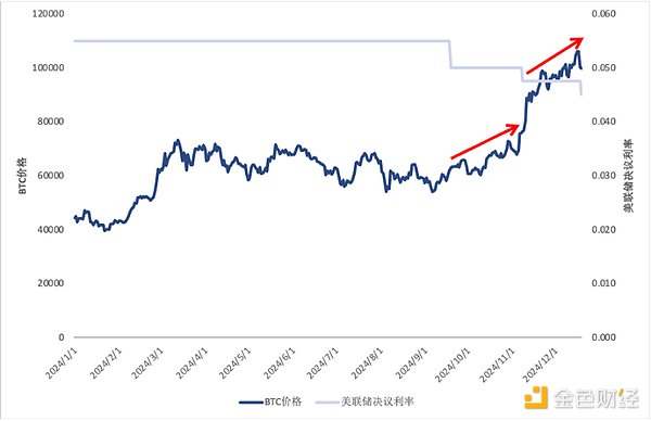 圖13:2024年BTC價格與美聯儲決議利率