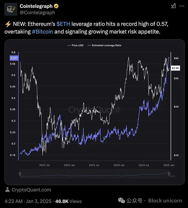 當Bitcoin進入高于歷史高點的價格發(fā)現(xiàn)階段時,杠桿比例會急劇上升,因為交易者尋求最大化他們的風險敞口。這會產(chǎn)生連鎖效應,其中借入的穩(wěn)定幣推動了進一步的購買,推高價格并鼓勵更多杠桿頭寸。這種倍數(shù)效應加速了價格波動。