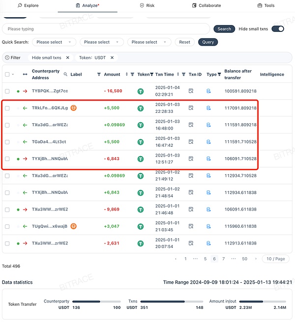 1/王星1月3日才失聯(lián),但該地址當(dāng)日并沒有出現(xiàn)14000USDT轉(zhuǎn)賬;