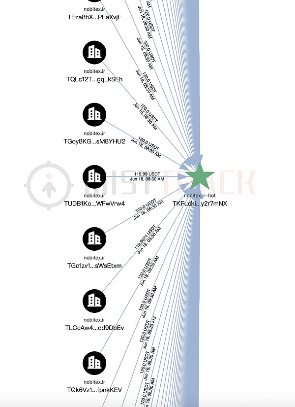 我們使用鏈上反*洗*錢與追蹤工具MistTrack進行分析,Nobitex的損失不完全統(tǒng)計如下: