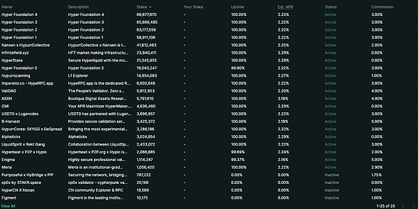 除此之外,$HYPE還是網絡安全的核心。Hyperliquid運行在Proof-of-stake共識機制上,質押$HYPE不只是為了減費或賺獎勵,它是整個出塊機制的基礎。