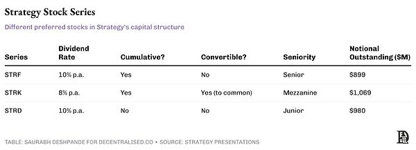 這一結(jié)構(gòu)的核心是三種不同的永久優(yōu)先股系列:STRF、STRK 和 STRD,每種都針對不同的投資者類型進行了定制。