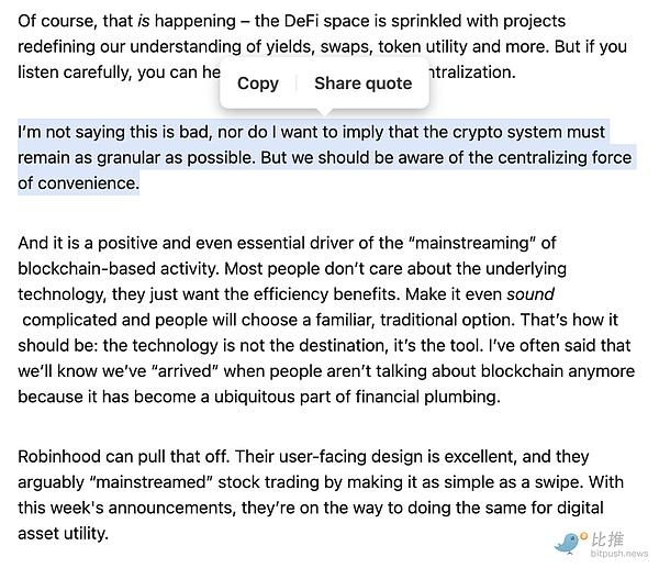 Crypto研究員NoelleAcheson在博文中犀利指出:"這不過是科技公司慣用的策略——用便利性包裝服務、漂亮的頁面捆綁用戶,而Blockchain技術反而退居幕后。"她認為Robinhood本質上是在建立新的中心化壁壘,而非真正推動金融民主化。
