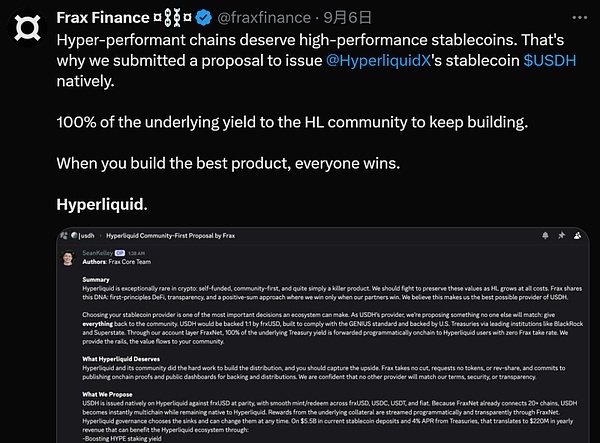就像HyperLiquid在招標(biāo)USDH發(fā)行權(quán)時(shí)所強(qiáng)調(diào)的那樣——以服務(wù)于HyperLiquid生態(tài)為先且合規(guī)為標(biāo)準(zhǔn),這便是DeFi穩(wěn)定幣的真正支點(diǎn)所在: