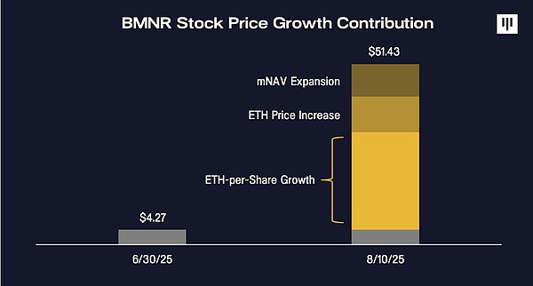 唯一的原因是:股民相信通過 BMNR 股票獲得的“0.01ETH”,最終會(huì)比直接持有 0.01ETH 更有價(jià)值, 也就是通過持有BMNR股票不僅直接可以獲得其代表的ETH份額,還可能獲得ETH本位的增值。
