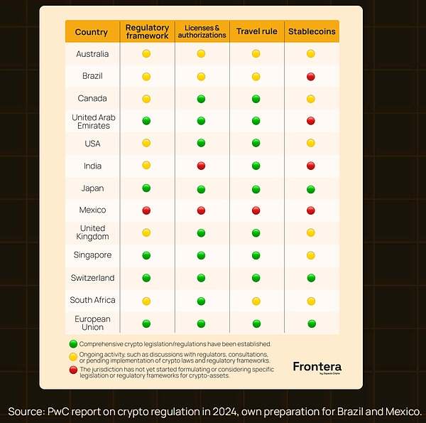 巴西已證明:清晰規則=機構資金+合規創新;阿根廷正處新政府擁抱行業的蜜月窗口,若及時立法,可鞏固區域龍頭;墨西哥一旦監管明朗,龐大的僑匯需求與金融科技積淀將瞬間放大鏈上流量;哥倫比亞則需先跨過技術與監管雙重門檻,才能把潛力變現。