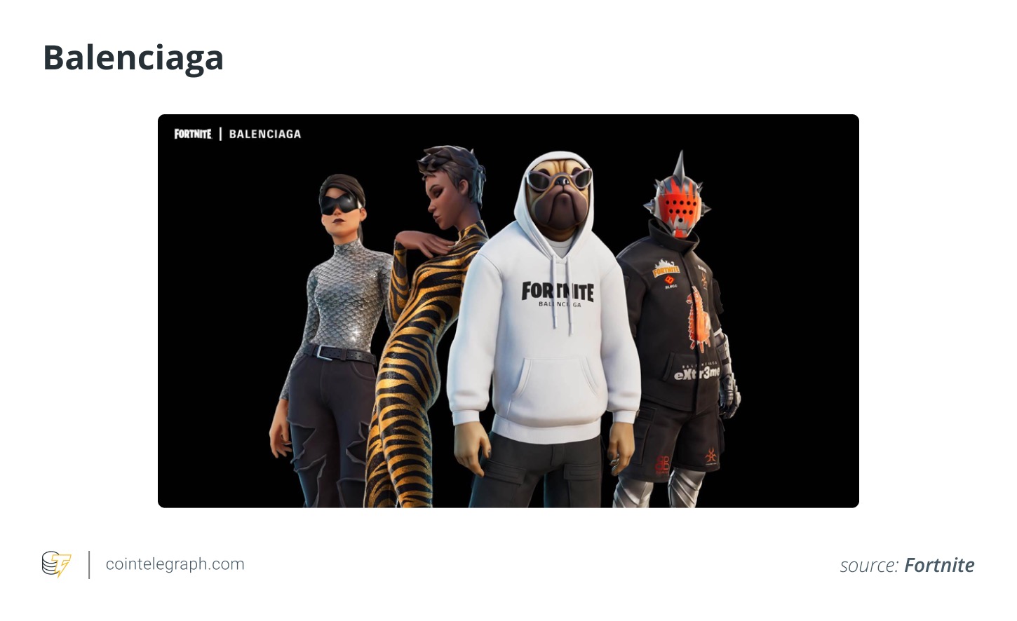 然后,在 2021 年 9 月,法國高級品牌 Balenciaga推出了 Fortnite 時尚服裝的數字系列,可以使用游戲貨幣以大約 8 美元的價格購買。加密游戲專家預測,數字資產投資的社交游戲部分可以為奢侈品市場增加約 10-2000 萬美元。