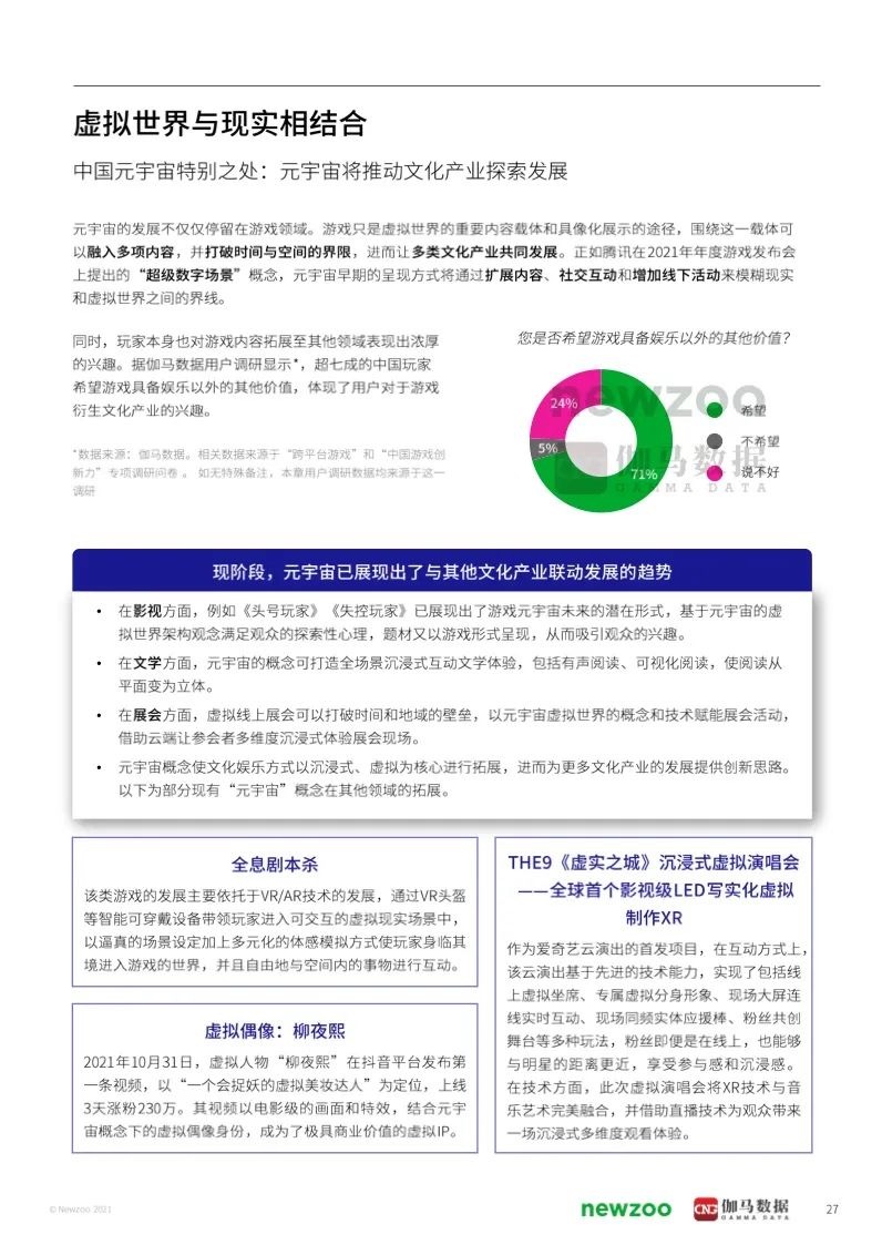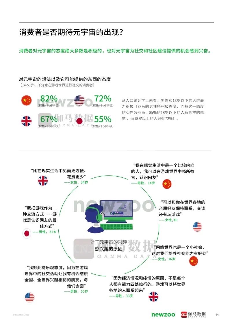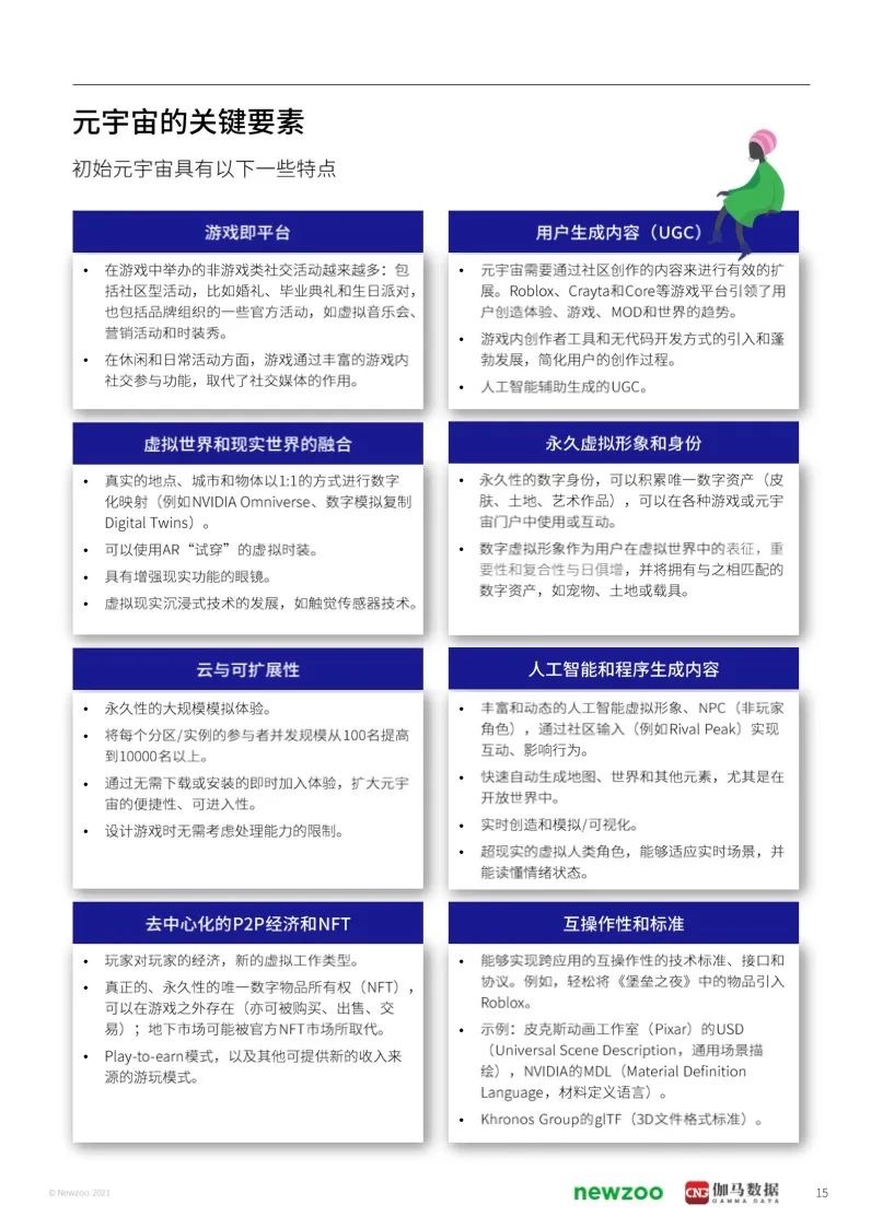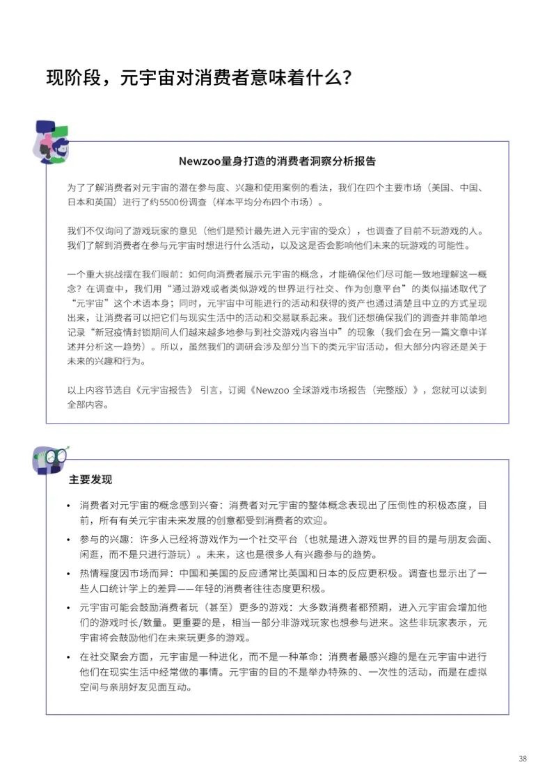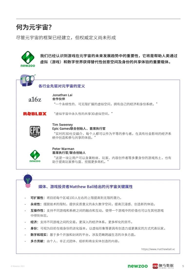 本次報告由Newzoo聯合伽馬數據聯合發布。報告對于全球以及cn市場的元宇宙發展進行了深入的分析。話題包括諸如元宇宙的歷史于演變、游戲生態系統的機遇和影響、消費者洞察、以及cn元宇宙發展狀況等特別主題。