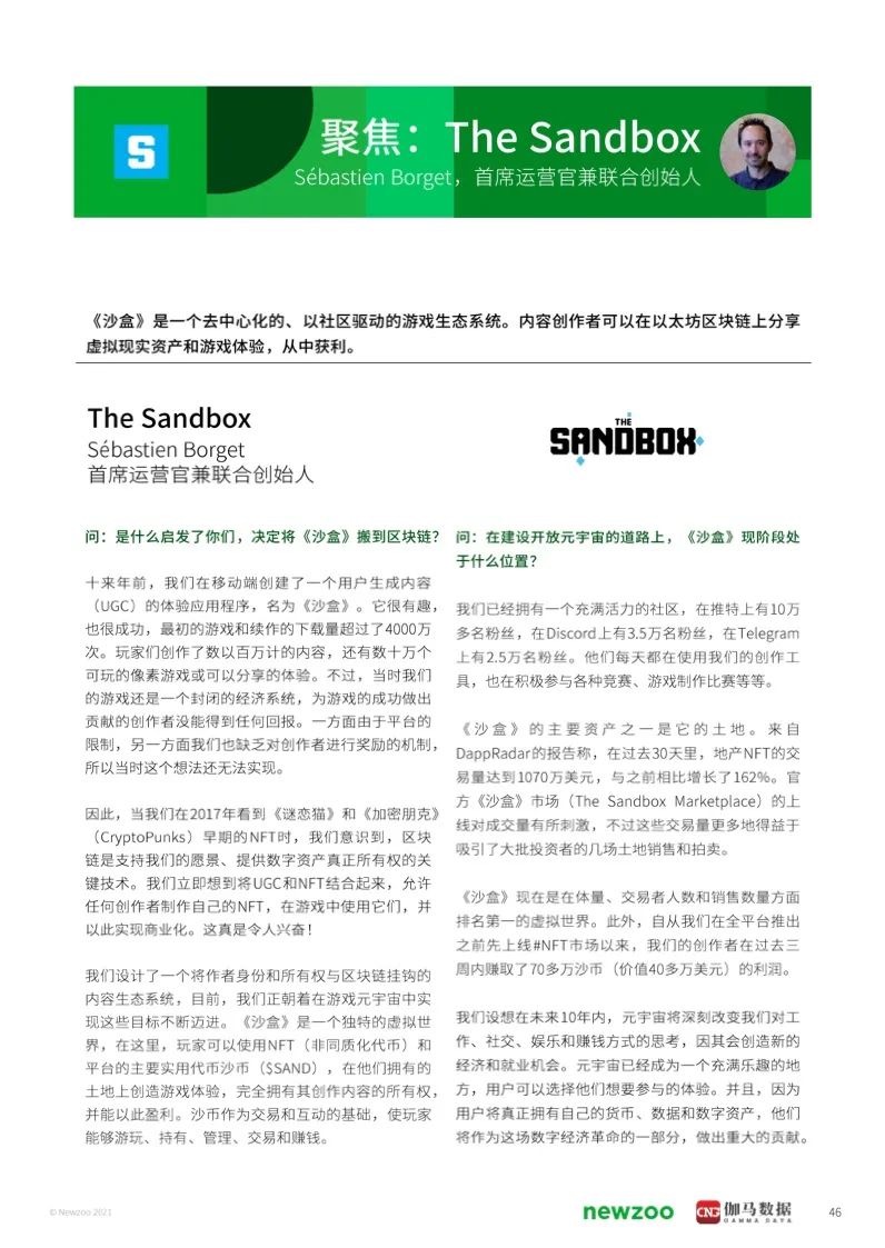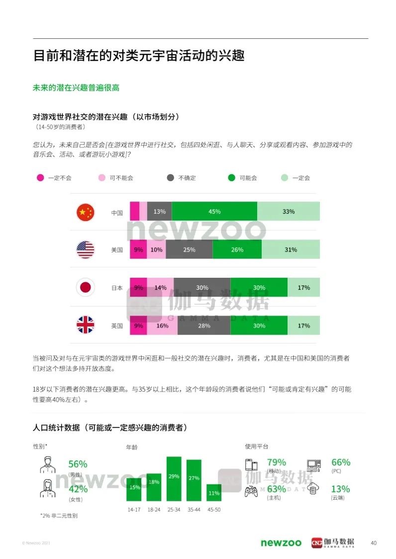 這份報告還采訪了在實現元宇宙的道路上扮演著不同角色的關鍵企業,包括了The Sandbox、英偉達、Unity、世紀華通、元境等,并且在cn和全球做了大量大用戶調研。