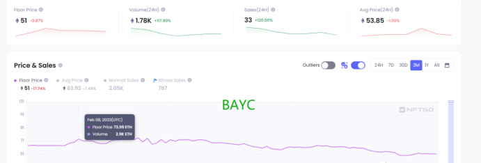 以BAYC為例,在今年1月中旬開始,地板從高點82ETH陰跌至低點44ETH,幾乎腰斬,現報價為51ETH。這一巨大的價格反轉已經動搖了大多數NFT持有者的信仰。相比之下,加密貨幣市場的表現如此強勁,導致一些持有NFT的人轉而進入加密貨幣市場。