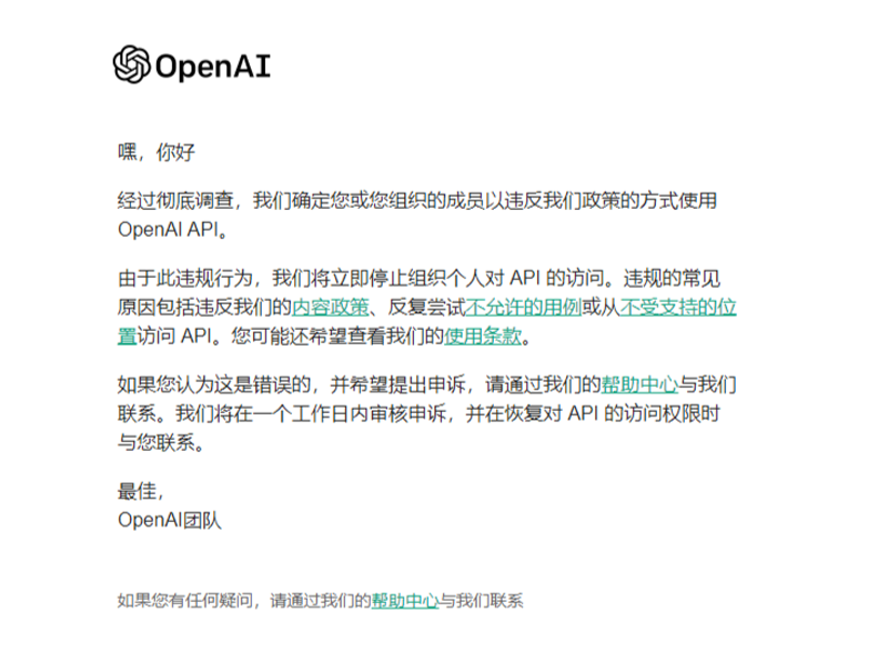 比如,在不支持ChatGPT的地區調用了API接口,或者反復嘗試生成OpenAI禁止的內容。