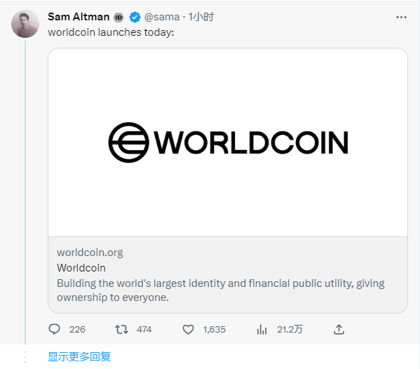 2023年7月24日,OpenAI首席執行官、Worldcoin聯合創始人Sam Altman在推特宣布,Worldcoin項目正式上線。Worldcoin項目包括隱私保護的數字身份WorldID和數字TokensWLD。