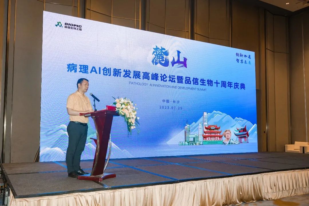 大會(huì)開(kāi)始,由品信生物創(chuàng)始人、總經(jīng)理劉劍鋒教授為會(huì)議致歡迎辭。劉劍鋒教授對(duì)前來(lái)參加此次病理AI高峰論壇的各位專(zhuān)家領(lǐng)導(dǎo),行業(yè)同仁表示熱烈歡迎。希望本次會(huì)議中的交流和合作能夠促進(jìn)人工智能在病理學(xué)的創(chuàng)新和應(yīng)用,為病理診斷工作貢獻(xiàn)更多的力量。