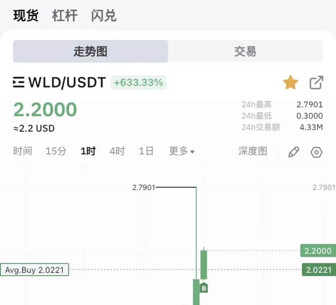 最新,世界幣(Worldcoin)的WLDTokens在各大交易所上線,漲幅超過20%