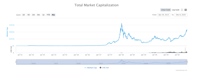 整個加密貨幣行業的總市值也是一個重要指標。從某種意義上說,總市值可用來評估區塊鏈和加密貨幣行業的累計價值。