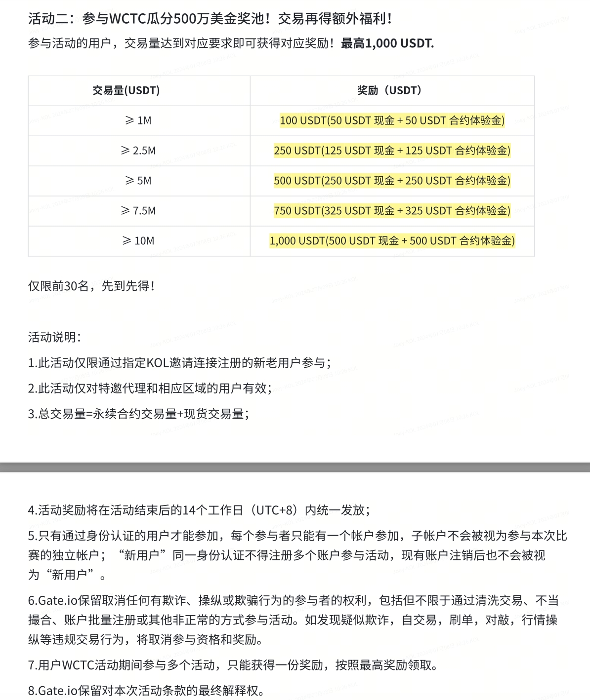 活動期間,新用戶通過指定KOL邀請鏈接注冊并完成身份認證且凈充值達到100 USDT即可獲得20USDT現(xiàn)金獎勵,僅限前50名,先到先得。