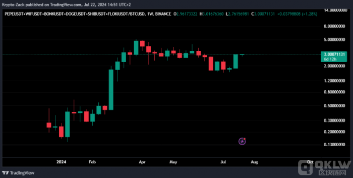 與此同時,著名模因幣交易員扎克·文圖拉(Zack Ventura)表示,更廣泛的模因幣行業可能有望進入牛市周期的下一階段。交易員在7月22日的X帖子中寫道:“該指數顯示了截至2023年12月與Bitcoin相比排名靠前的模因幣。下一個模因幣季節即將到來。”