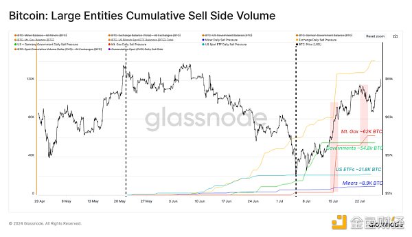在比較過去兩個月從Mt.Gox到其他大型實體的分配規模時,我們可以看到,這些分配的規模已經超過ETF流入、面向礦工的發行規模,以及德國政府的賣方。